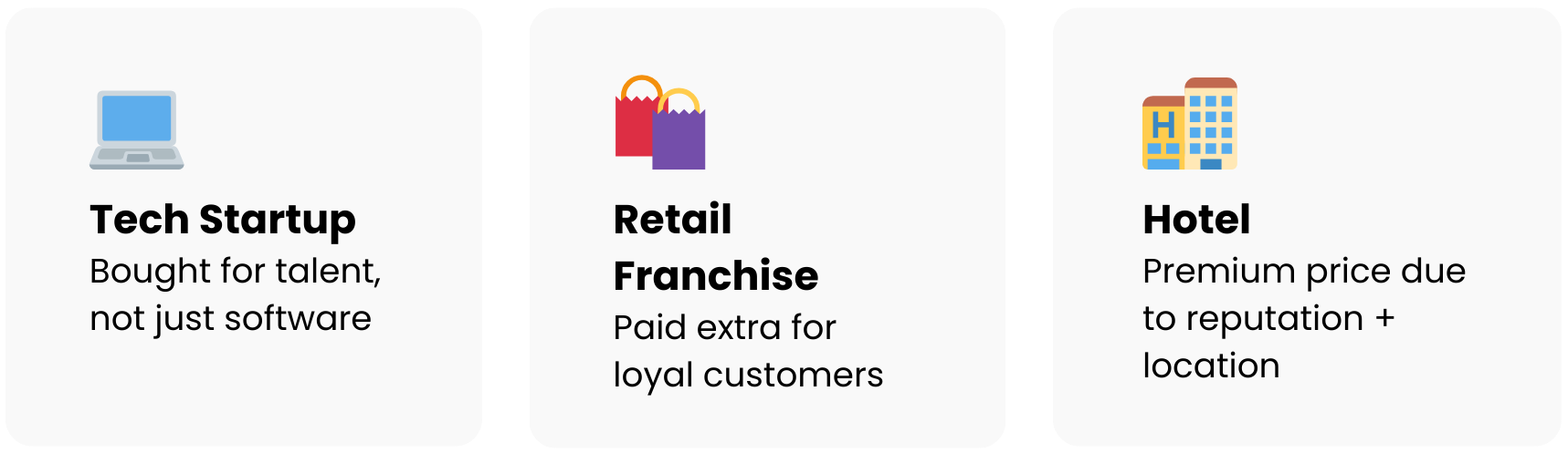Paying more for a business due to its reputation, loyal customer base, or strong employee culture.