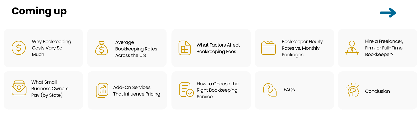 Bookkeeping fees in the U.S. can vary from one state to another, but investing in reliable financial management pays for itself in accuracy and peace of mind. Whether you choose a freelancer or a professional accounting firm, prioritize transparency, experience, and scalable pricing that grows with your business.