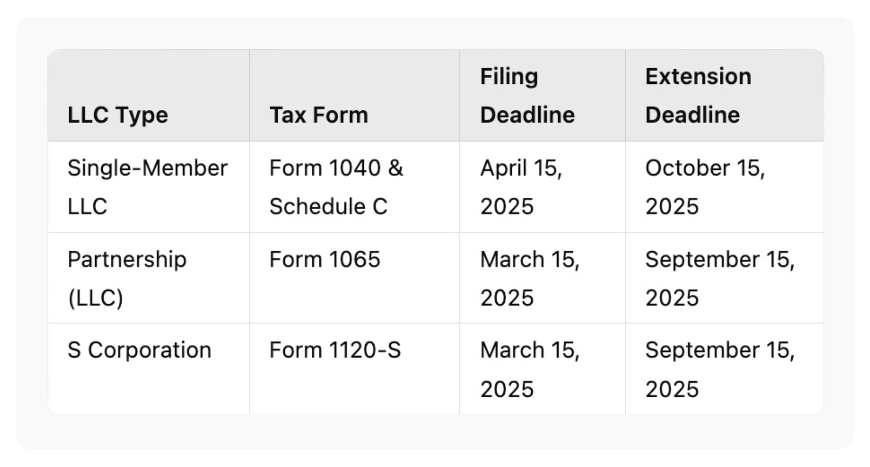 Key LLC Tax Deadlines for 2025