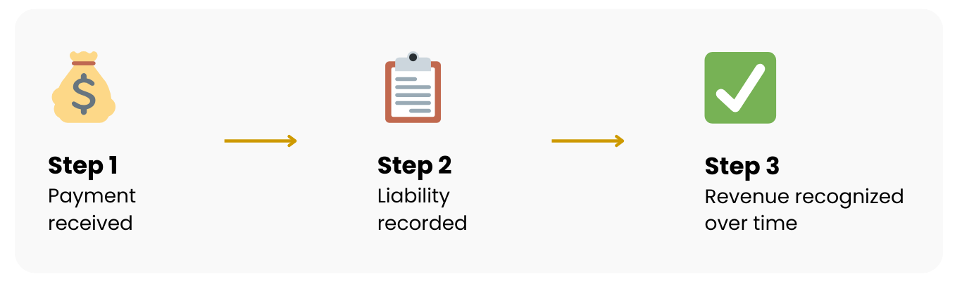 Here’s a simplified step-by-step of the deferred revenue process: