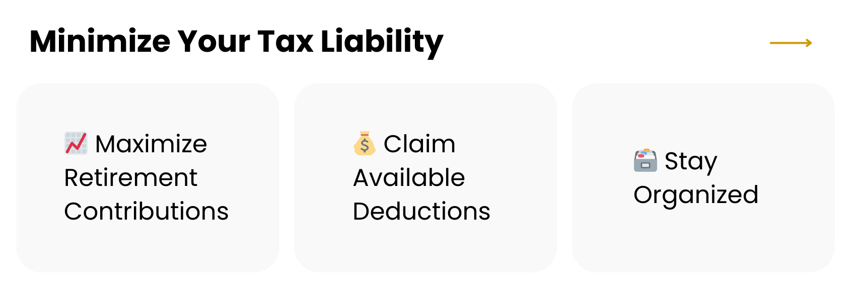 - Maximize Retirement Contributions: Retirement account contributions to items like 401(k)s or IRAs lower your income tax and help you save for the future.