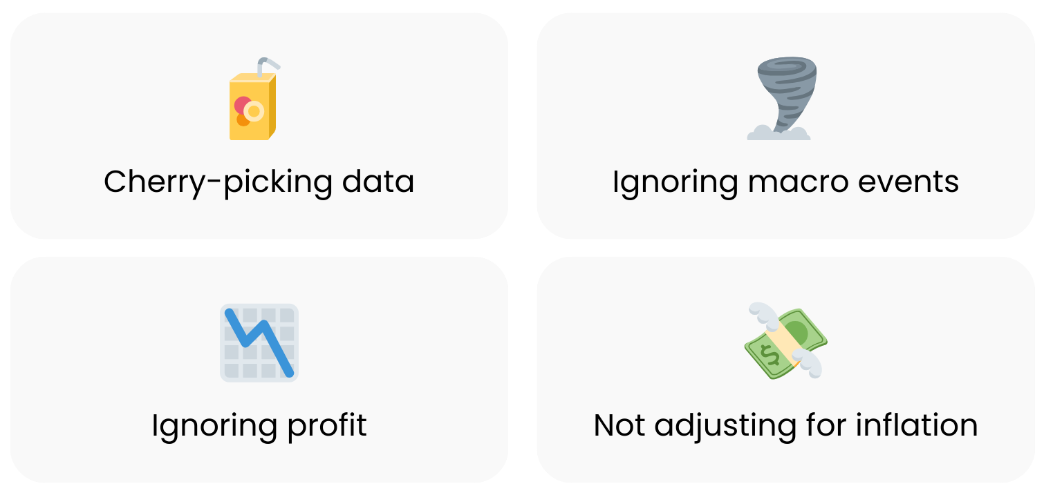 Only comparing your best months or quarters doesn’t give an honest picture. - Ignoring External Factors